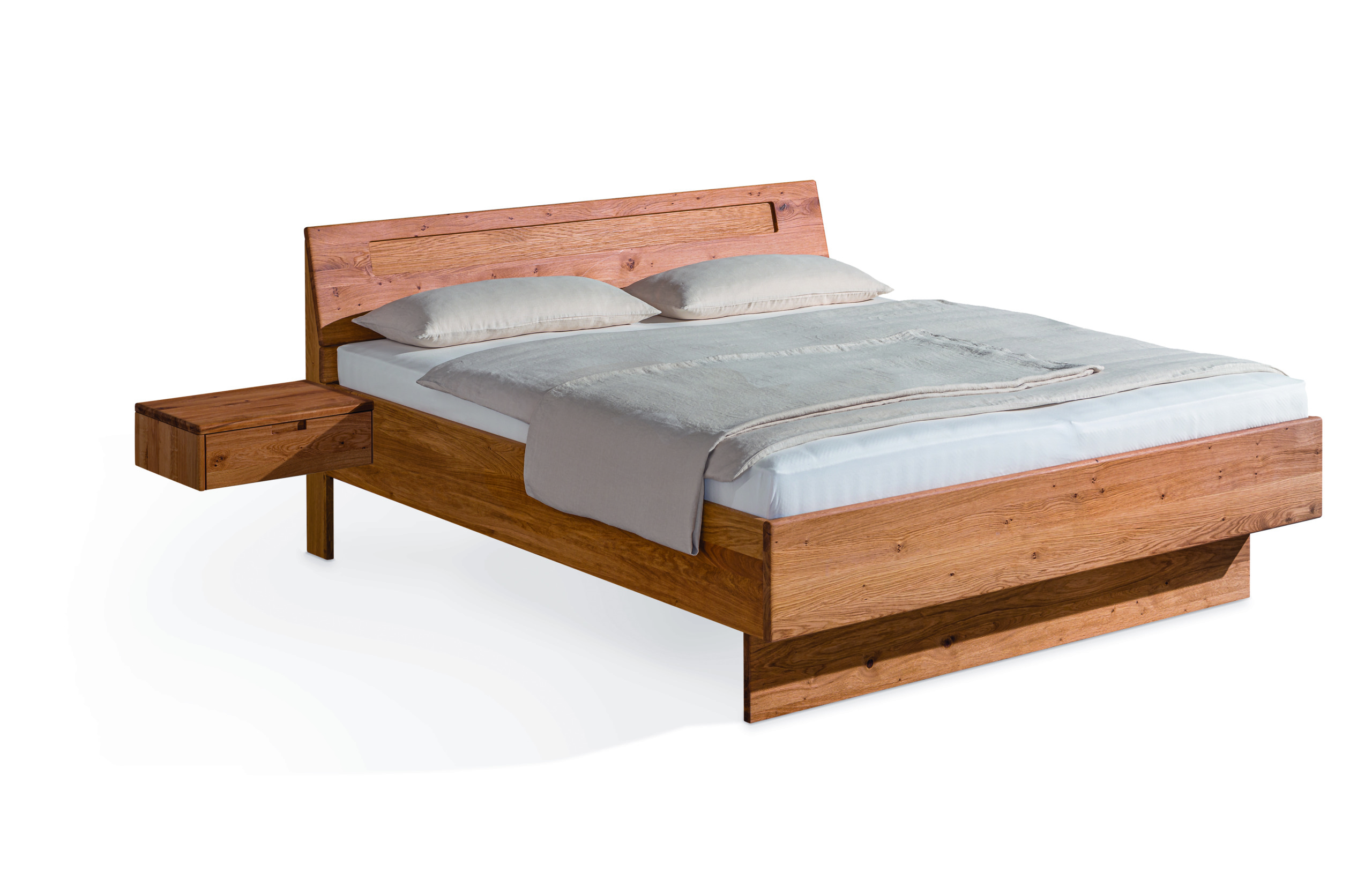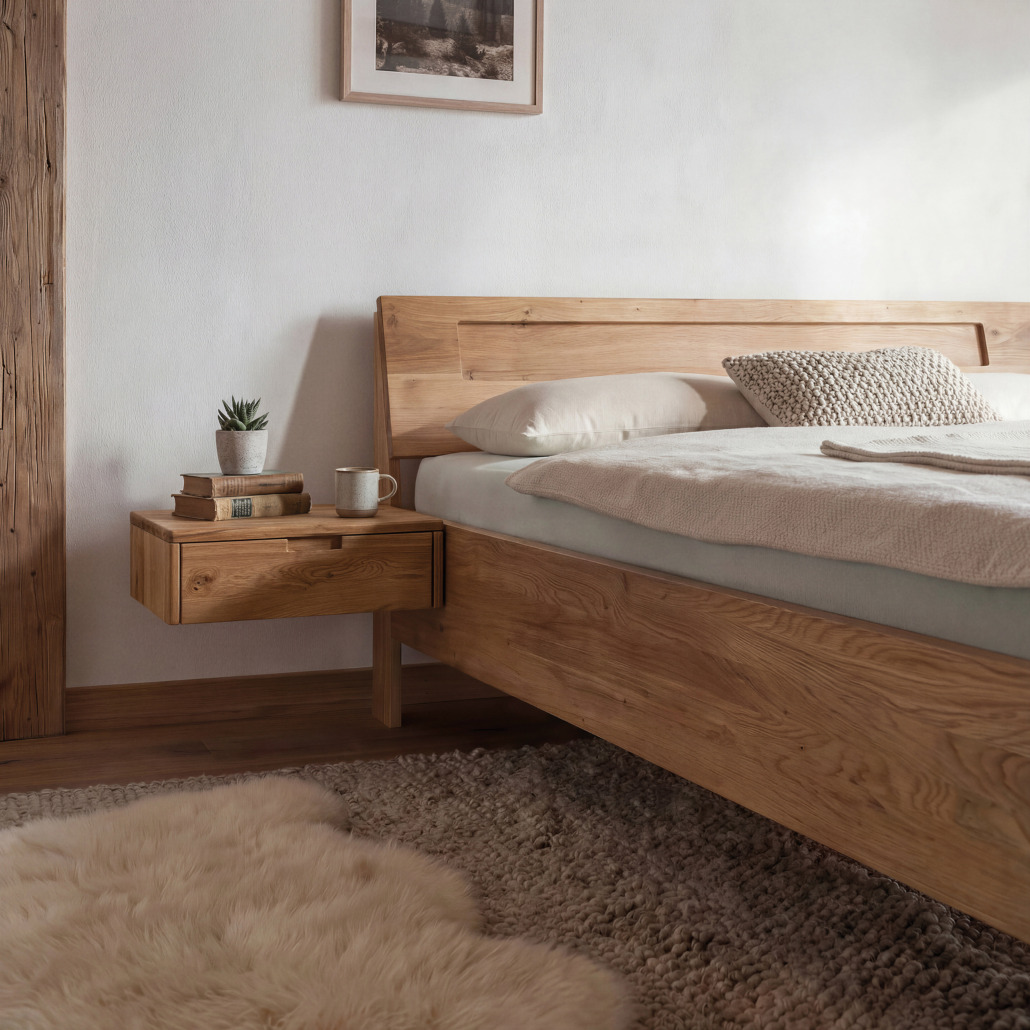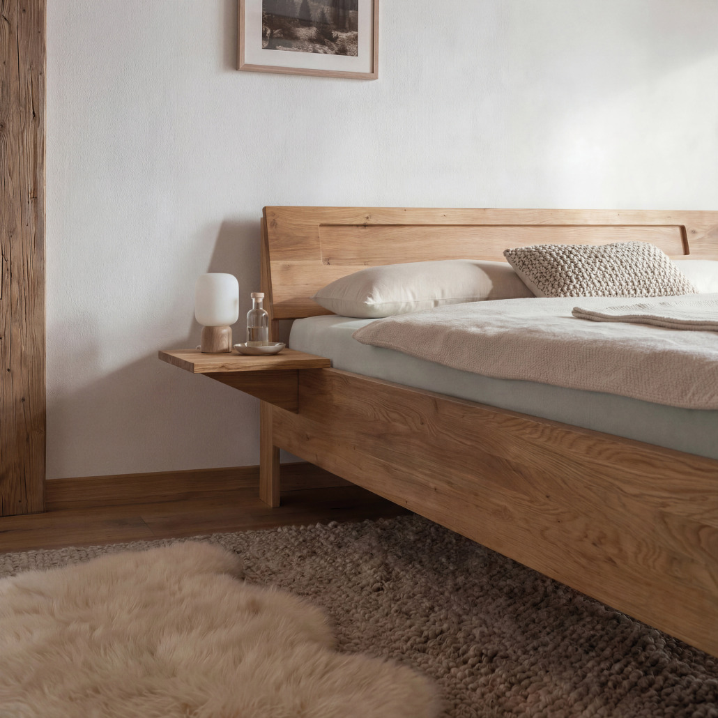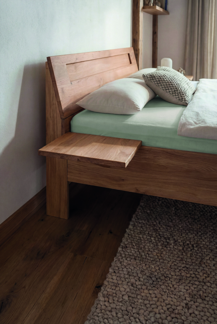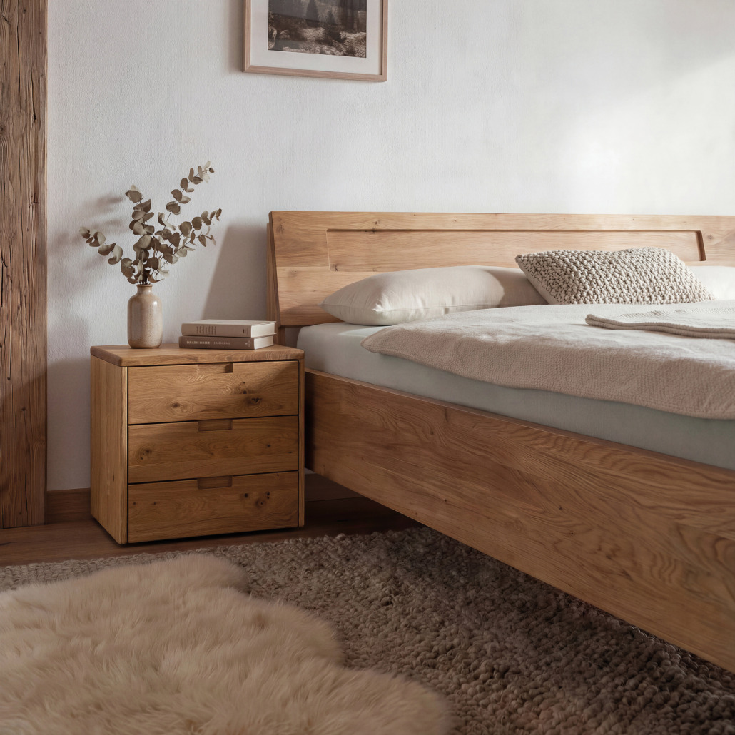 Die Konstruktion wirkt leicht und zeitgemäß. Gleichzeitig zeigt sie, was möglich ist: Stauraum kann von Anfang an mitgedacht oder zu einem späteren Zeitpunkt ergänzt werden. So passt sich das Bett an unterschiedliche Lebenssituationen an – und das ganz ohne gestalterische Brüche. Das Massivholzbett ARIVE ist ein Bett für Menschen, die bewusst und klar wohnen – und sich die Freiheit erhalten möchten, Dinge später neu zu denken.
